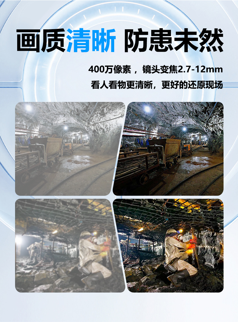 矿用本安型摄像仪核心适配煤矿井下有爆炸性气体(瓦斯)、煤尘及潮湿、腐蚀、高低温等恶劣环境,聚焦生产作业、安全监控、关键设施与特殊场景四大核心,具体概括如下: